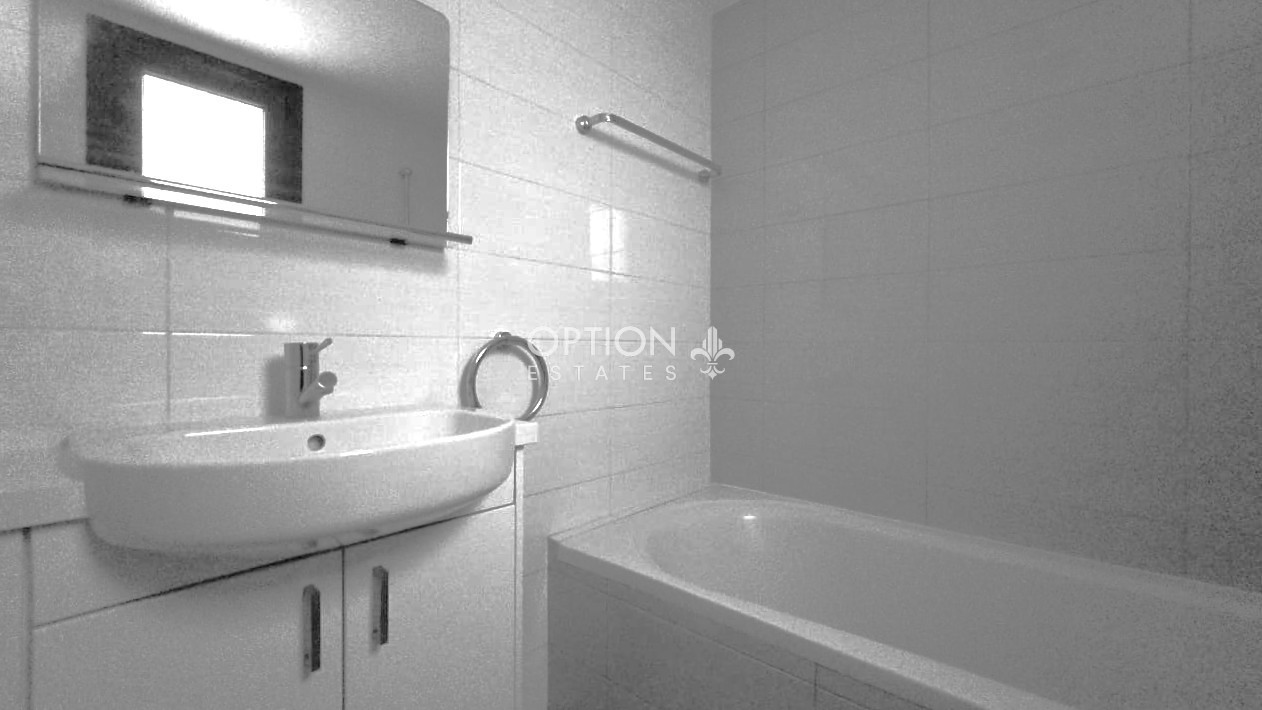 Entering the apartment you find a spacious open plan living room which is combined with the fully-equipped kitchen. A corridor leads to the main bathroom, to the master bedroom featuring en suite shower, and to the second bedroom. The bedrooms are big and they both feature built-in wardrobes.