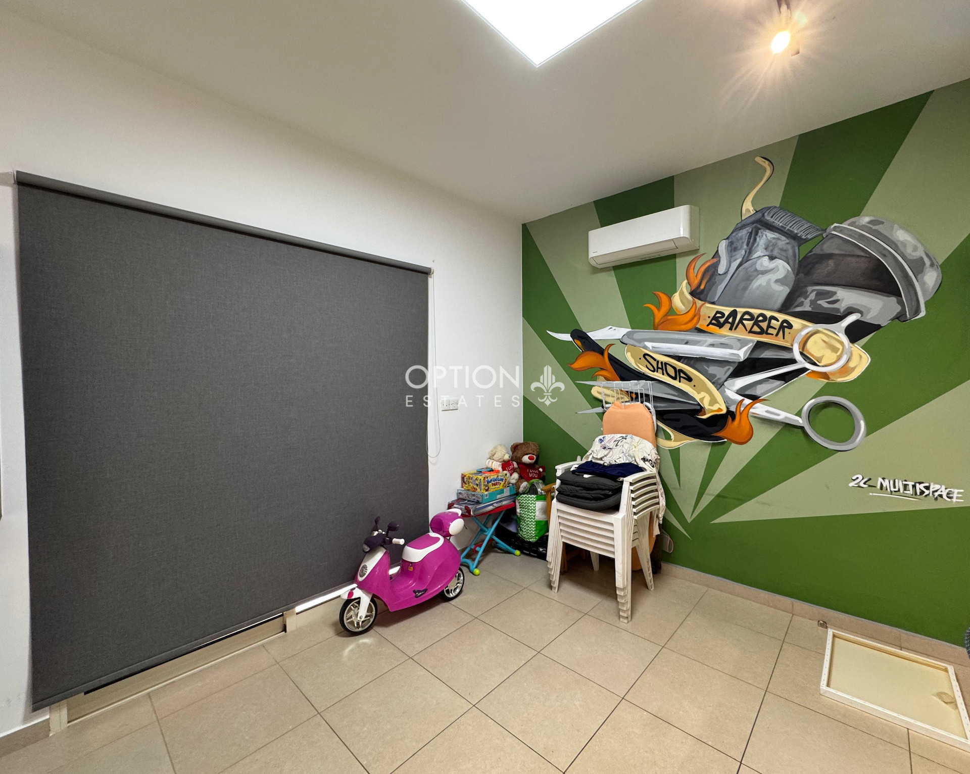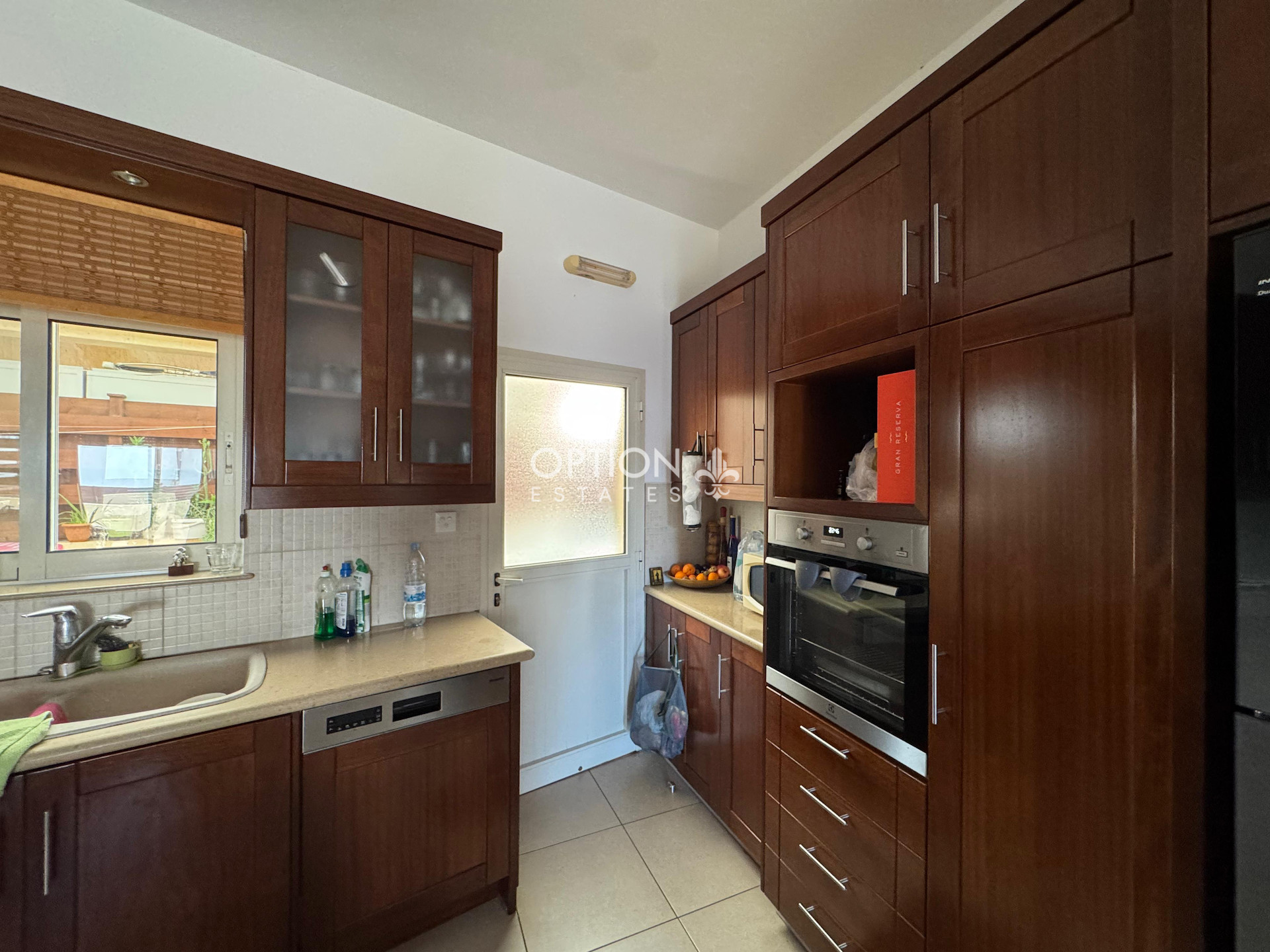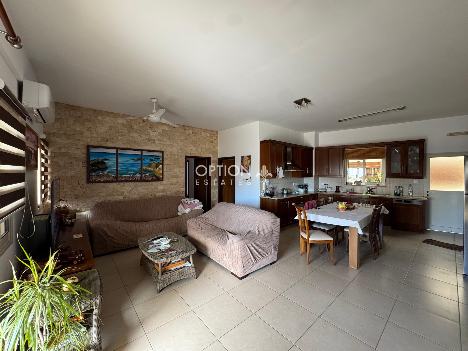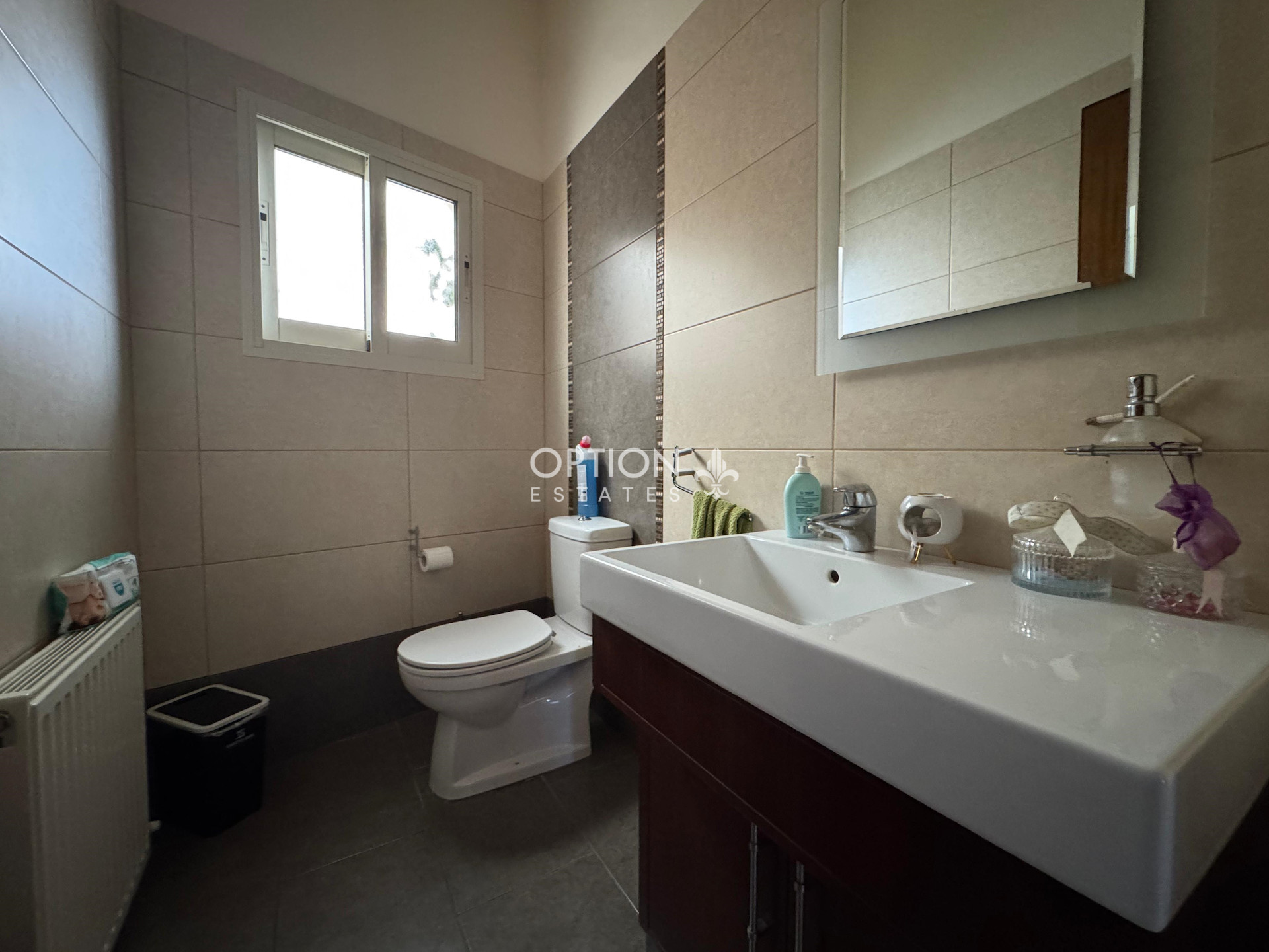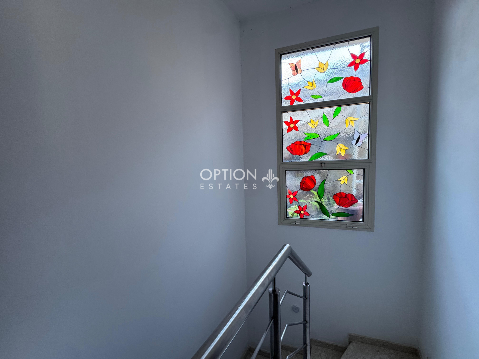 The property includes the kitchen appliances, A/C split units in all areas, central heating, and it is also being sold fully furnished. The total size of the plot is 633m², the internal area is 220m², plus the basement 180m².